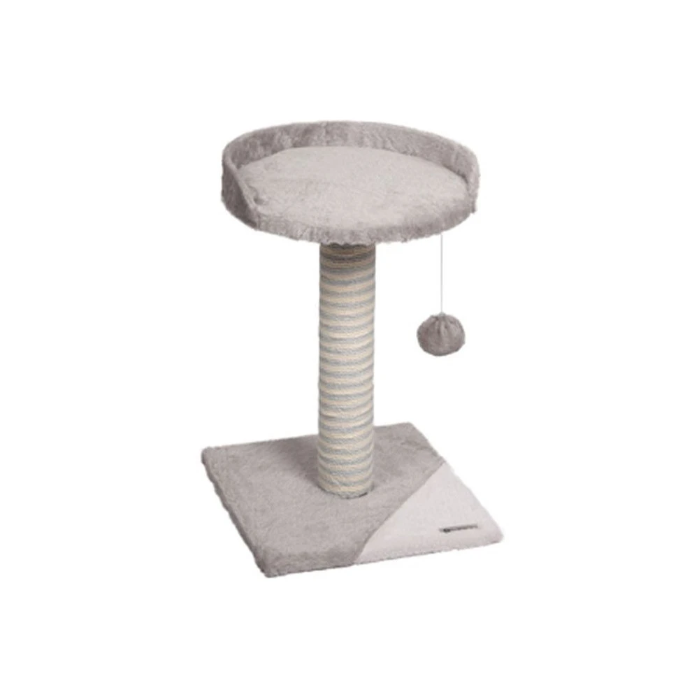 - Griffoir avec corde en jute. Plateforme ø 30.5 cm, rembourrée. Recouvert de peluche douce. Avec balle en peluche.