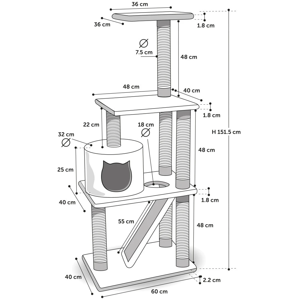 - Votre chat pourra aussi rêvasser dans la cachette rembourrée du milieu.