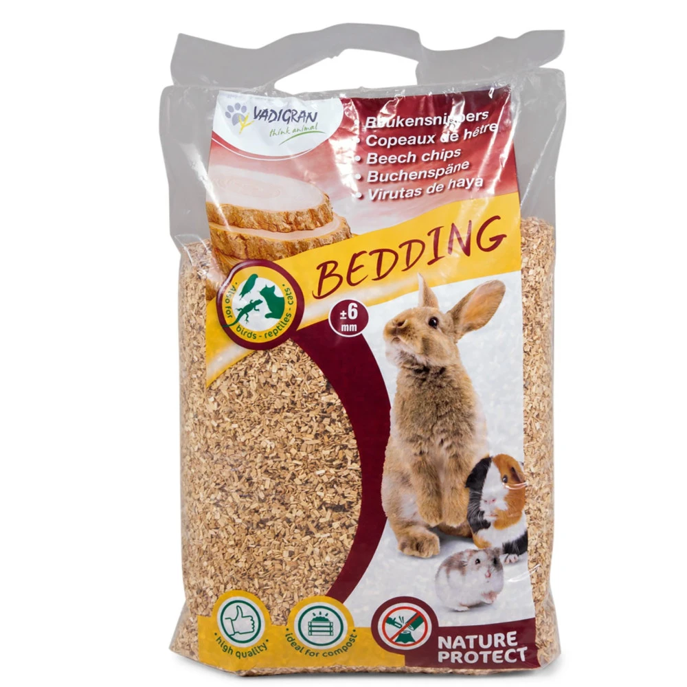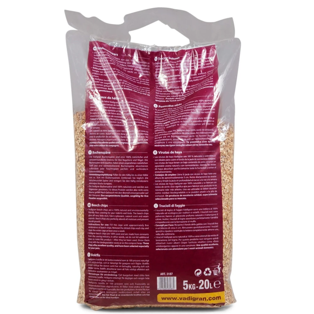 Les copeaux de hêtre 6 mm Vadigran offrent une couverture de sol 100% naturelle et respectueuse de l’environnement pour vos rongeurs et oiseaux.