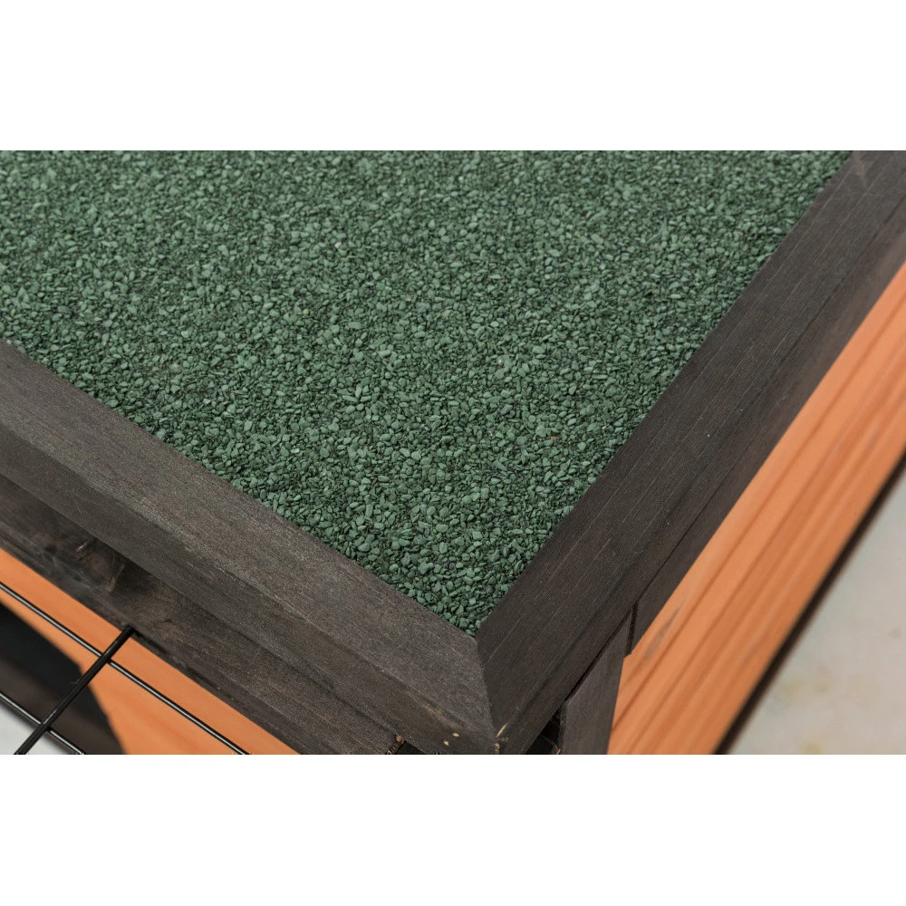 - Avec abri de protection contre les intempéries et toit avec carton bitumé en revêtement minéral, toit à ouvrir par le haut.