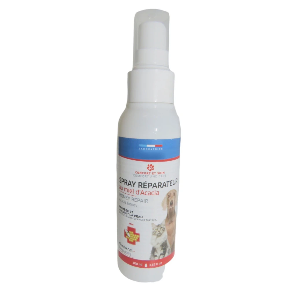- composition: Eau, miel 10%, bétaïne, émollients, stabilisants, jus de feuille d’aloès (Aloe Véra) en poudre, allantoine, huile essentielle de lavande (Lavandula angustifolia), huile essentielle de cyprès (Cupressus sempervirens), huile essentielle de thym (Thymus vulgaris), amérisant, hydratant.