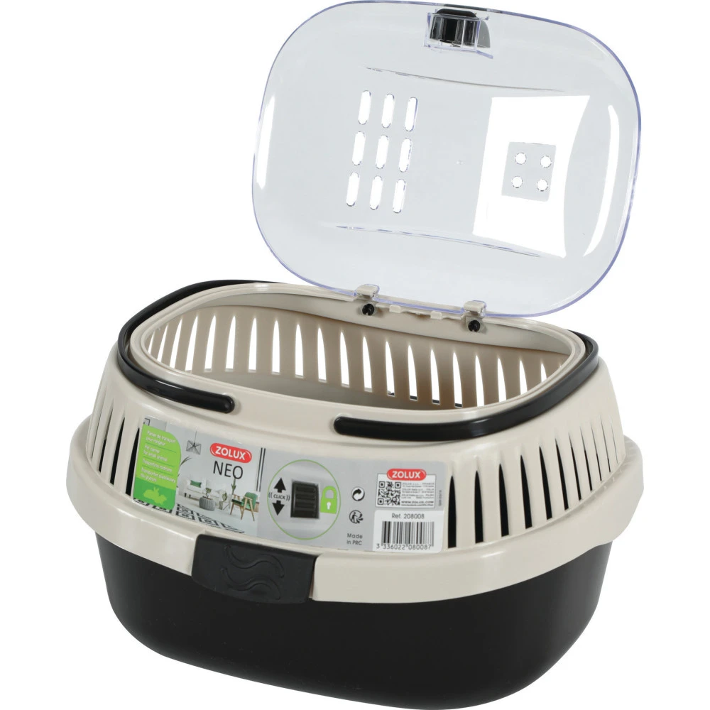 Panier de transport pour petits rongeurs avec grande ouverture par le dessus et système de fermeture sécurisée pour limiter les risques d’évasion. Couvercle translucide : une bonne visibilité sur l’animal.